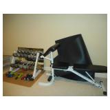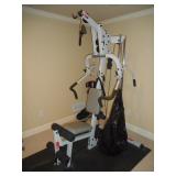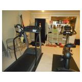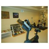 Entire room full of exercise equipment including Life Fitness Life Cycle C3 bike, Trimline T340 Treadmill, Pacific Fitness Zuma, Nautilus weight bench, weights & weight rack