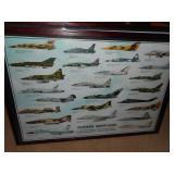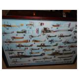 Framed art including WWI and WWII aircraft posters