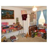 Great well preserved estate in North Houston includes a Nascar collection with many accessories, great curio cabinet, silverplate coffee service, many other silver plate items including a fine warmer, toys and dolls-many still new in the boxes, girl's china set, outdoor wicker furniture, metal and brass day bed, stereo and other electronics, solid wood bedroom furniture, lighthouse collection, Queen Anne desk and various office supplies, fine assembled model ships, great framed art, large desk, file cabinets, desk lamp, office supplies, vintage wooden toys, painting on velvet, antique bed, antique sideboard, art deco clock, full kitchen including electronics, fine smaller wooden desk, lamps, wicker loveseat, books, bookends, antique clock, crystal, stemware, Rattan and glass table and chair set, Franciscan apple pattern dishes, many China sets, extensive blue and white dishes and matching presentation pieces, ladies dresses, hats, many fine smalls, wall hanging curio cabinet, many stuffed animals, vintage cookie jars, purses, sconces, ladies boots and shoes, decorative pillows, Depression glass, decorative crystal, perfect bronze statue, bell collection, ashtray collection, folding card table and chairs, treadmill, vintage glass decantors, oil lamp, beautiful mid-century glasses, many linens, porcelain baskets, carnival glass, Corning ware, microwave, decorative collector glasses, milk glass, vintage mixer, Pyrex items, turkey platters, McCoy pottery, enamel ware, Desert Rose pattern items, Francoma pottery and other collectible vintage pottery, dreamcatcher, beautiful bar glasses, spfa table, coffee table, art-glass bowl, Aggie items, small boxed vintage CD juke box, and much, much more! Don't miss this fun and extensive estate sale!
