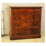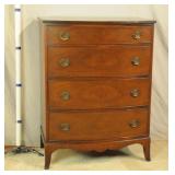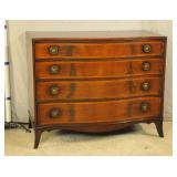 ItemDescription1.Mahogany 4 drawer bow front chest; 68-504 - (chips of veneer on bottom right side; missing molding on drawer) - 34x21x44.5
