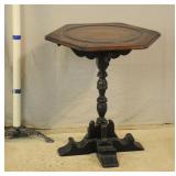 2.Walnut hexagonal top side table with ornate pedestal base; 68-489 - turned column - 25x22x26.5