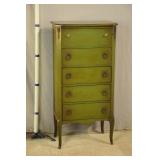5.Green French style bronze mounted 5 drawer lingere chest; 68-438 - (finish as-is) - 24x14x49