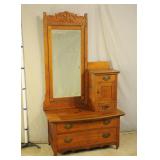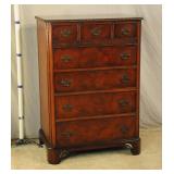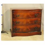 7.Crotch mahogany serpentine front 3 drawer bachelor's chest; 68-426 - 36x19x32