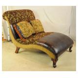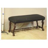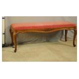 8.Long carved French style bench with cushion seat; 68-505 - (fabric as-is) - 51x18.5x19