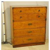 11.Bernhardt oak campaign style 5 drawer chest; 68-458 - 36x18x42.5