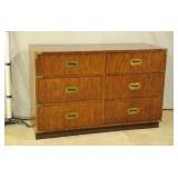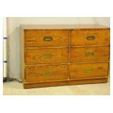 12.Bernhardt oak campaign style 6 drawer double dresser; 68-458 - 44x18x29.5