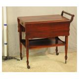 14.Mahogany drop leaf serving cart with drawer; 68-425 - spade feet with casters - scalloped edge drop leaves - 31x18.5x29