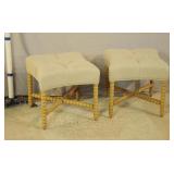 19.Pair of distressed bobbin leg benches with tufted linen seats; 205-678 - x stretcher base - 18.5x18.5x19