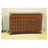 22.Oriental style narrow cabinet with brass accents; 68-473 - 12 drawers over 2 doors - 40.5x9.5x25.5