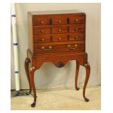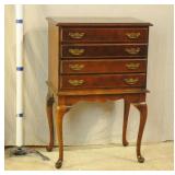 24.Thomasville cherry Queen Anne style 4 drawer silver chest; 68-493 - 25x16x37