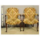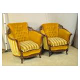370.His and Hers carved French style arm chair with tufted backs; 68-530 - 37.5x36.5x36.5 his; 38x35x34 hers