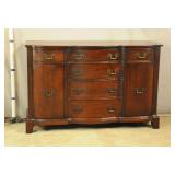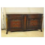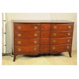 47.Drexel mahogany 4 drawer serpentine front server/bachelor's chest; 68-431 - divided silver drawer - 36x19x32.5
