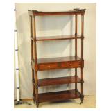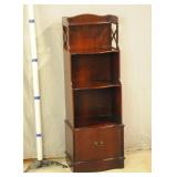 36.Narrow mahogany step back bookcase/what-not stand; 68-528 - door on base - serpentine front - 17.5x12x48.5