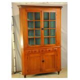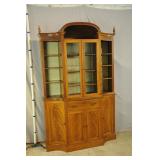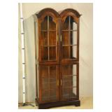 42.Jasper Cabinet Co. cherry double bonnet top curio cabinet; 68-450 - 4 doors - lighted interior with adjustable glass shelves - 36x15.5x77.5