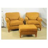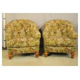 45.Pair of Sherrill floral upholstered arm chairs with tufted backs; 68-445 - turned legs - 35x35x34