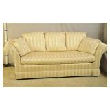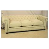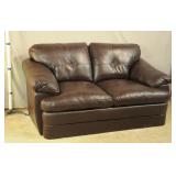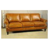 57.Distressed brown leather sofa with turned legs; 90-663 - brass nail head trim - 21.5x41x35