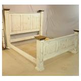 65.Distressed white king size bed with bolt-on rails; 52-688 - raised panel headboard and footboard - 85x93x68.5; 76.5x80 inside rails