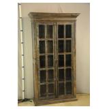73.Distressed 2 door bookcase/cabinet with raised panel sides; 52-690 - ornate metal hardware - 47x18x85