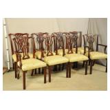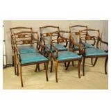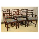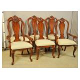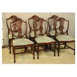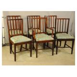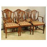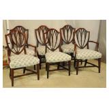 76.Set of 6 carved shield back dining chairs; 68-527 - 2 arm chairs, 4 side chairs - stretcher base - curved on arm chairs - 23x22x38 arm chair; 21x20.5x38 side chair
