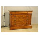 77.Ethan Allen marble top 4 drawer chest with raised panel sides; 68-492 - burl front drawers - 42.5x18x34