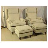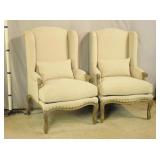 78.Pair of linen wing back arm chairs with distressed gray frames; 205-693 - nail head trim - 28.5x33x47
