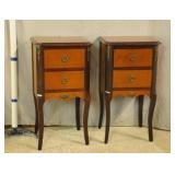 84.Pair of inlaid satinwood French style bronze mounted 2 drawer night stands; 68-491 - 15.5x13.5x29.5
