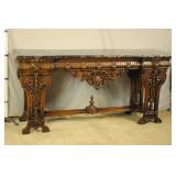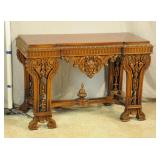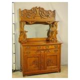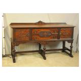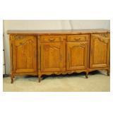 86.Large carved oak French style sideboard with parquet top; 68-412 - raised panel doors and sides - 2 drawers and 4 doors - 87x22.5x40