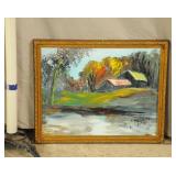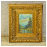 344.Small landscape painting on board by Mrs. C.U. Leisure; 274-041 - ornate gold frame - February 1941 - 11.5x13