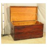 96.Large early dovetailed 6 board lift top trunk; 103-626 - casters - (cracked/repaired top; finish as-is) - 45.5x24x24.5