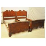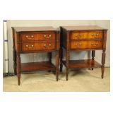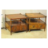 354.Pair of inlaid mahogany cane cut 2 tier end tables; 68-421 - 2 doors - (finish as-is) - 26x26x24