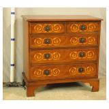 3.Inlaid bombe style 2 drawer commode; 68-lot - banded top, sides and drawers - 32x14x28