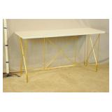 48.Distressed trestle base farm table; 52-682 - 39.5x72x31