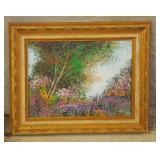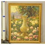 63.Large original floral painting on canvas by Anna Sandhu Ray; 274-008 - ornate dark gold frame - 34.5x46.5