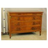 87.Charak banded crotch mahogany serpentine front 4 drawer low chest; 68-468 - 42.5x21x34