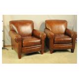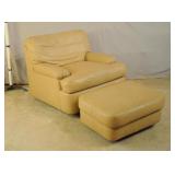91.Hancock & Moore leather reclining arm chair with ottoman; 68-456 - brass nail head trim - 34.5x40.5x39 chair; 27x21.5x17 ottoman