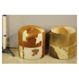 28.Pair of round galvanized metal base side tables with distressed wood tops; 52-680 - 19x19x23.5