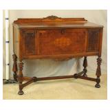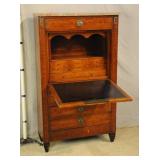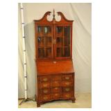 18.Fancher burl front arch top 2 part slant front secretary; 68-532 - 26.5x17x77