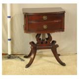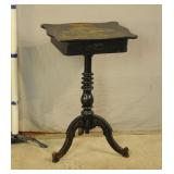 350.Early decorated lift top sewing stand with mirror; 68-415 - turned column - (finish as-is; leans slightly) - 20x15x31.5