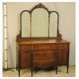 16.Huffman-Boyle crotch mahogany credenza with desk drawer; 68-142 - etched mirror doors - open sides - 52x18x36