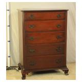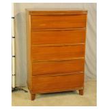 357.Walnut 5 drawer mid-century chest; 37-753 - (finish as-is) - 34x19x52.5