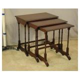 35.Cherry cane cut end table with 2 round drop leaf nesting tables; 68-416 - 3 tables in 1 - 19x19x21.5