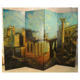 85.Theodore Alexander large 2 panel decorated folding screen; 90-692 - birds and trees design - 48x81