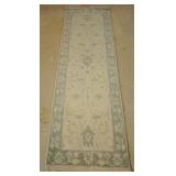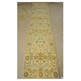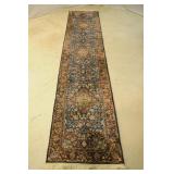 339.Hand knotted rug with navy field; 68-523 - possibly silk blend - (dirty/stains) - 2.6x11.9