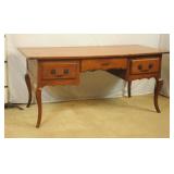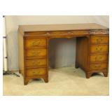 46.Bernhardt oak campaign style kneehole desk; 68-458 - (1 pull has loose handle) - 54x24x29.5