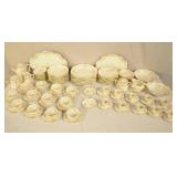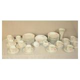 340.51 piece set of Mikasa "Renee" china plus hand painted vase; 37-740 - 12 four piece place settings - plate, bowl, cup, saucer - serving bowl, cream & sugar