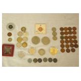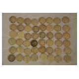 303.Group of 50 misc early US coins; 662- - 1889 V-Nickel - 1913 Dime - 1901 Indian Head penny with Buffalo, NY Pan-Am Expo Lucky border - 1903 Indian Head penny - 1976 Bicentennial Eisenhower Dollar - 1977 Eishenhower dollar - 1962 Franklin Half dollr - 7 silver Washington quarters 1943-1964 - 1 Washington Statehood quarter 2007 - 3 Buffalo nickels - 1969-D Moon Landing Penny - 23 Lincoln Wheat pennies 1925-1958 - 6 Steel War pennies 1943 - John Tyler $1 coin - JFK Presidential Medallion