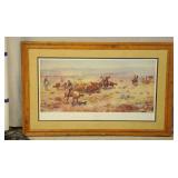 306.Large framed print "When Horse Flesh Comes High" by Charles M. Russell; 274-140 - No. 245 - 43x33