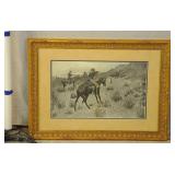 308.Framed print "The Outlier" by Frederic Remington; 274-143 - No. 2780 - 29.5x41