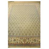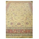 348.Large hand knotted rug with cream color field; 37-752 - thick pile - (a few discrete stains) - 9.1x13.7