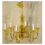 337.Brass 6 light chandelier with trumpet style arms; 663-108 - 27x27x20.5